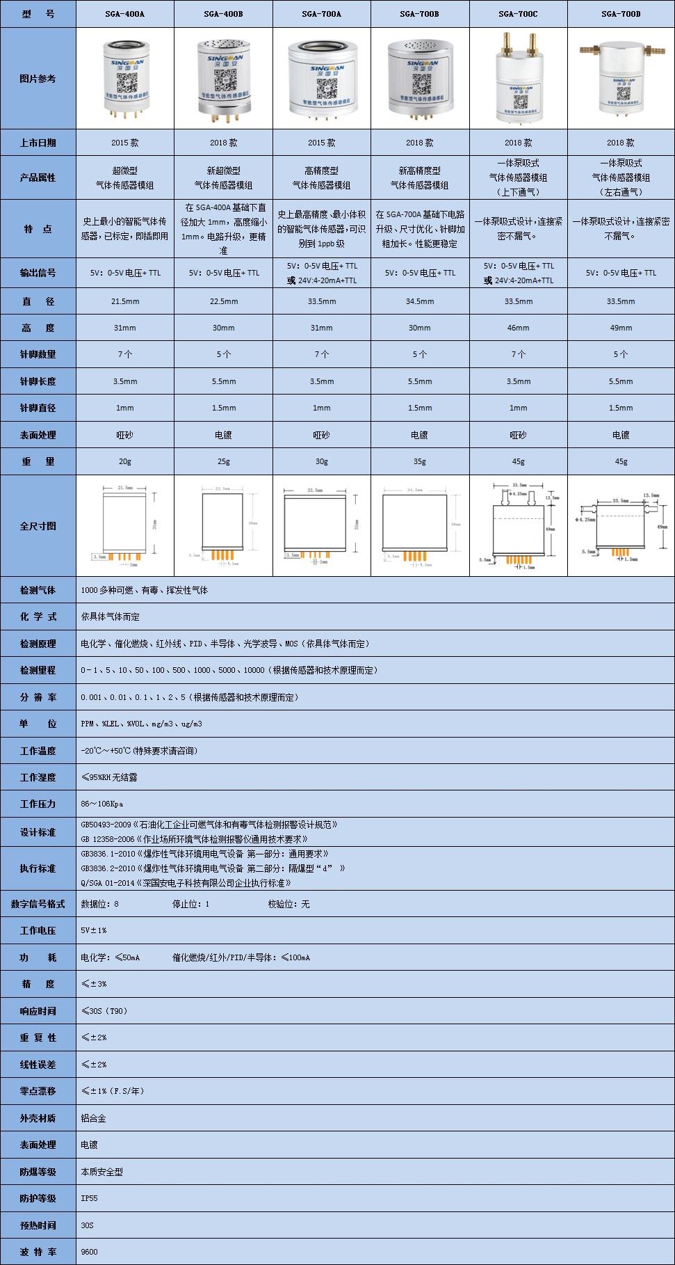 SGA-400系列目前是市面上最小的智能型氣體傳感器,體積小,重量小,非常適合無人機、工業機器人等空間受限的客戶使用。SGA-700系列內置四電極高精度氣體傳感器,非常適合空氣質量、園區廠界、網格化環境監測、惡臭在線監測、污染源在線監測、溫室氣體在線監測等場所使用。
