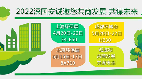預(yù)告,好消息,深國安電子2022年參展三場重量級環(huán)保展,時(shí)間安排為第一場:4月上海環(huán)保展,第二場:5月成都環(huán)博會(huì),第三場:6月北京環(huán)保展。有需要參加的客戶及朋友,可咨詢...